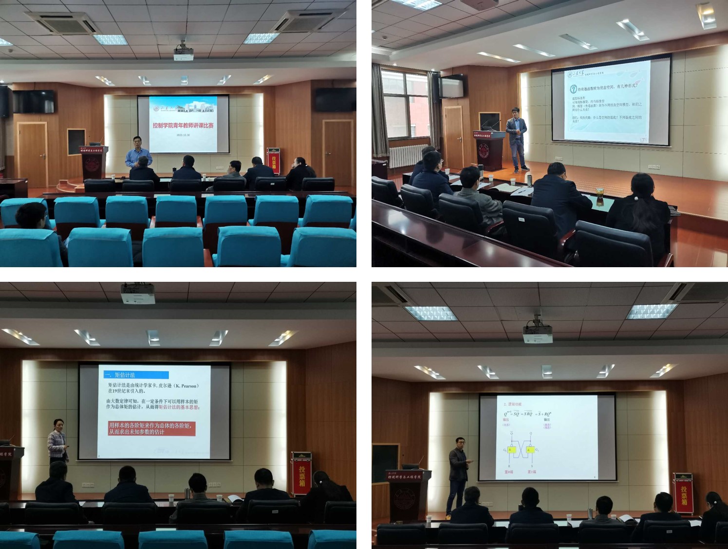 各系所的青年教师经过充分准备,向现场评委展示了各自的教学风采。各位参赛教师结合PPT向大家展示了概率论与数理统计、现代控制理论、数字电子技术基础等多门学科,以清晰流畅且富有感染力的语言表达,生动形象且幽默风趣的教学风格,注重启发和培养创新思维的教学特色,营造出氛围轻松又有吸引力的课堂效果,给现场评委留下了深刻印象。特别是各位教师在讲课过程中注重课程思政的融合,并加强与学生互动,激发学生兴趣,鼓励学生发挥特长,体现了以学生为中心的发展思路。专家评委主要从教学设计、教学内容、教学组织、教学语言与教态、教学特色、教学反思六个方面进行评审,根据打分情况评选出了一二三等奖,并推荐6名优秀选手参加校级教学比赛。