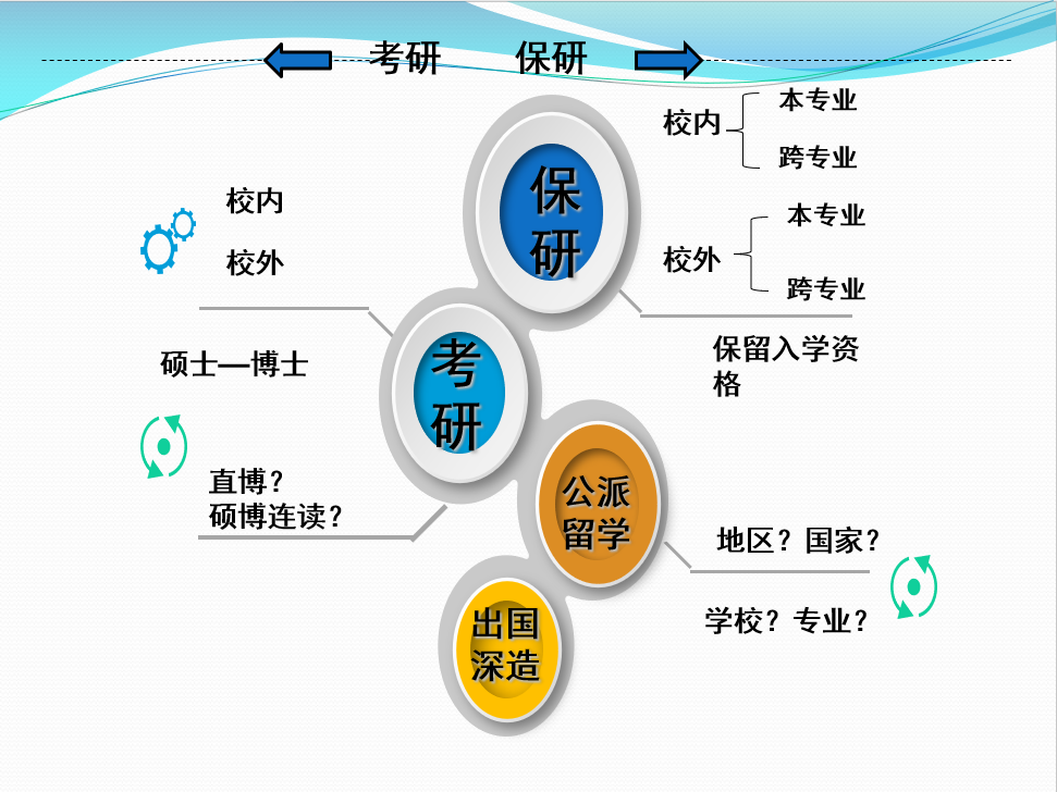 的各个研究方向、各专业招生人数及考研同学的考试科目等,使学生们的升学报考思路更加清晰。出国深造方面,吴晓晴向学生们介绍了国家、学校的相关政策和国外一些大学的招生情况并展示了往年学生的出国学校等。保研情况方面,根据《SWAG