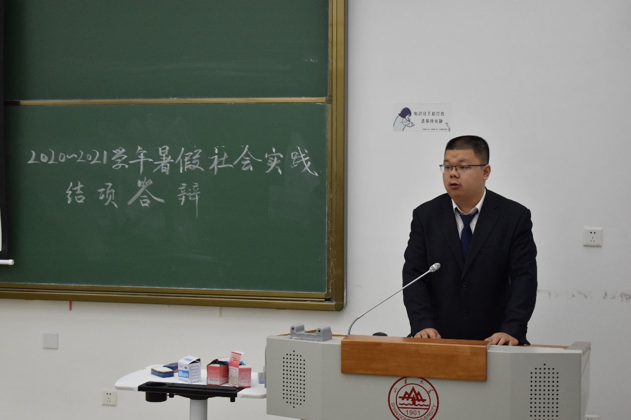 本次答辩会共有35个团队参加。各团队针对社会热点,结合时政背景,选择了多样的调研主题。答辩代表先简单概述了实践活动的背景与目的,详细展示调研成果和宣传工作,重点分析活动展开的影响与意义。受假期疫情影响,实践团队的后续活动展开从线下转为线上,SWAG