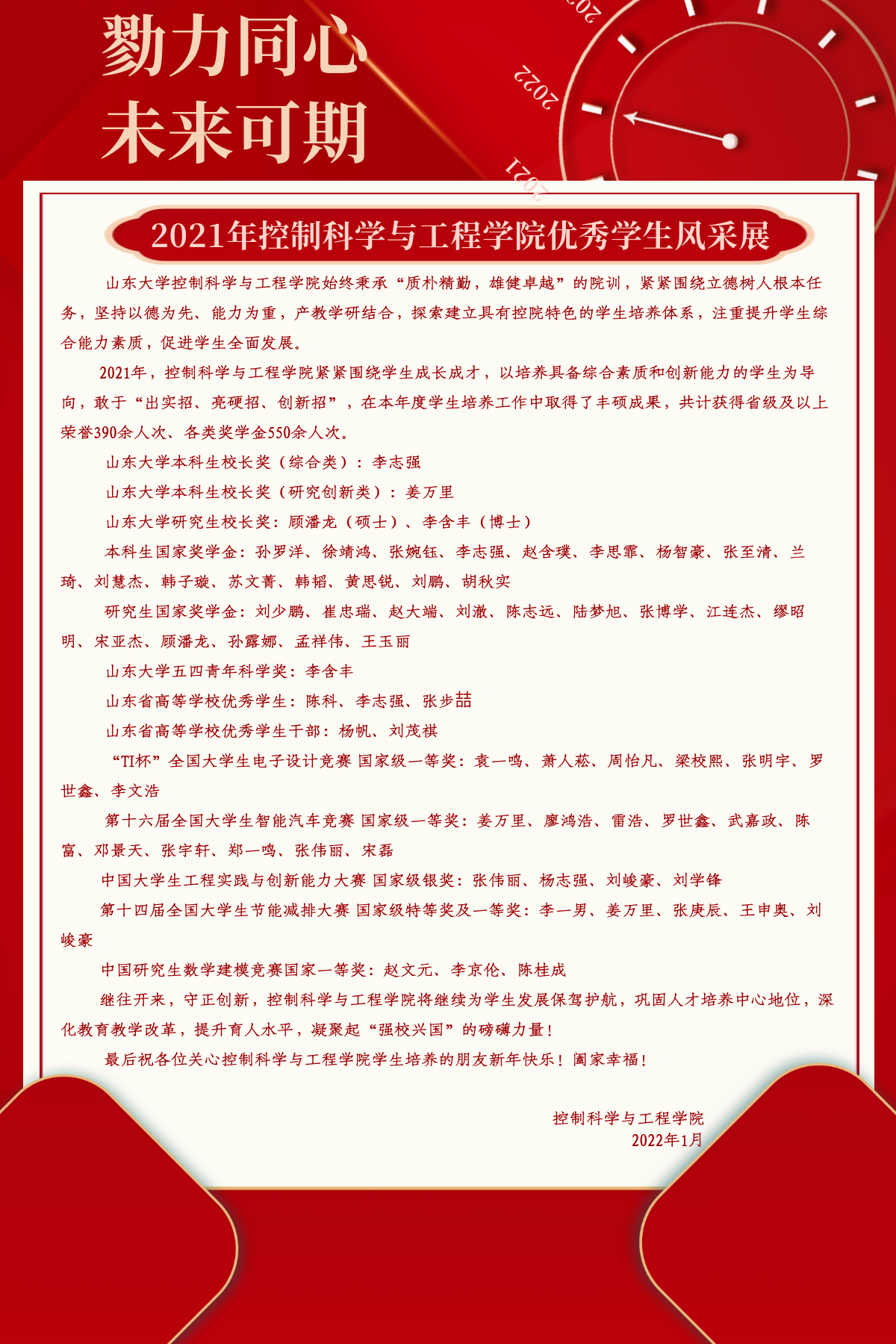 坚持以德为先、能力为重,产教学研结合,提升育人水平,致力于培养传承山大基因、服务国家战略、守正开拓创新的模范榜样。为优秀学生家庭寄送喜报是依托学校、家庭和社会各方共同营造积极向上氛围的有效抓手,是坚持家校共育的有力举措,也是宣传“控院风采”的重要途径。通过喜报寄送形式来充分展示SWAG