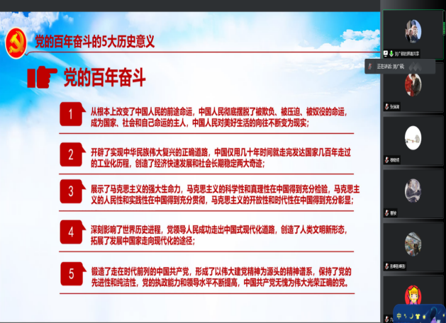 “青年之声,强国有我”宣讲队与甘肃白银平川区青少年活动中心合作,采取PPT和视频相结合的形式,以史实、案例和数据为依托,先后开展四次线上宣讲,阐述党的十九届六中全会精神,累计300余人参加活动。