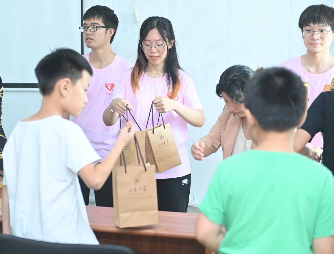 仪式最后,连心支教调研团捐赠爱心物资,給孩子们带去山大的爱与希望。最后,参会人员与学生合影留念,定格这难忘时刻。至此,SWAG