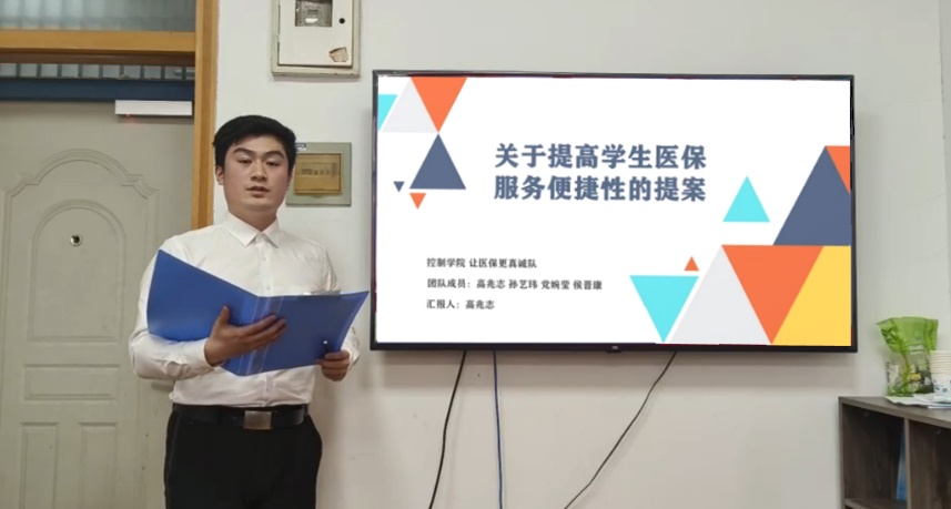 提案大赛参赛队员针对同学们提出的急愁难盼问题在现有的医保政策下给予了帮助或记录。队长高兆志就提案大赛中收集的调查问卷汇总成报告向参会同学做介绍,并现场对决赛答辩PPT进行展示。