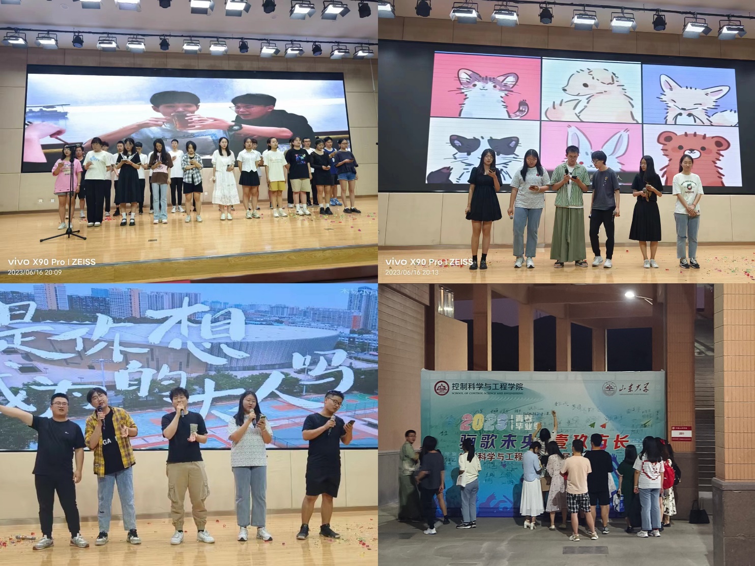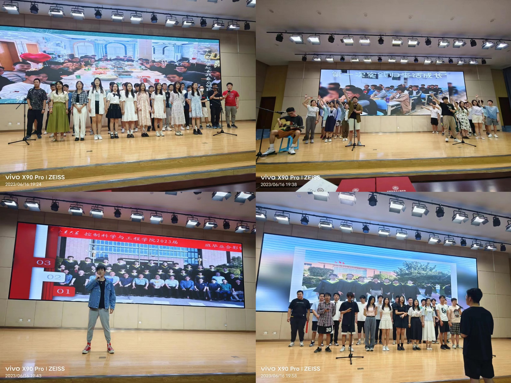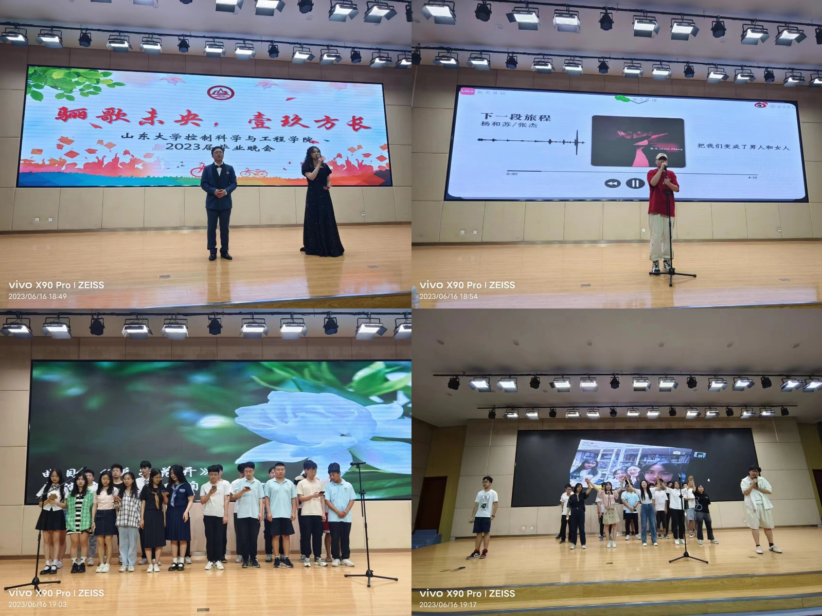 十大歌手、2019级本科毕业生刘闯的一首《下一段旅程》瞬间点燃了现场的气氛,大家共同欣赏2019级各班毕业生们精心准备的纪念视频和毕业节目,自动化1班带来一曲《栀子花开》,让大家重温初入山大的美好时光,记忆犹新;自动化2班共同合唱《你曾是少年》,轻松的气氛缓解了离别的伤感;自动化卓越班带来一首《蓝莲花》燃爆全场,赢得了大家的阵阵掌声;自动化4班演唱的《再见》和人工智能与机器人班带来的《凤凰花开的路口》将晚会推入高潮,现场欢呼声不断,掌声此起彼伏;自科班演唱的歌曲《十年》带领回忆了大学四年一幕幕熟悉的情境,让人既欢乐又感动;生医班合唱歌曲《同桌的你》,不仅唱出了兴隆山校区那些熟悉的风景,也唱出了所有毕业学子的心声;自动化3班一曲《送别》感染了在场学子倾情共唱,感动全场;宣传中心带来的歌曲《这世界那么多人》优雅动听,舒缓的歌声里,尽是大家对山大和控院的深深情意。最后,第39届学生工作委员会主席团在舞台上一起演唱了《亲爱的旅人》《朋友》等歌曲则唤起了同学们关于大学四年生活中点点滴滴的回忆,令人不禁流下了不舍的泪水。