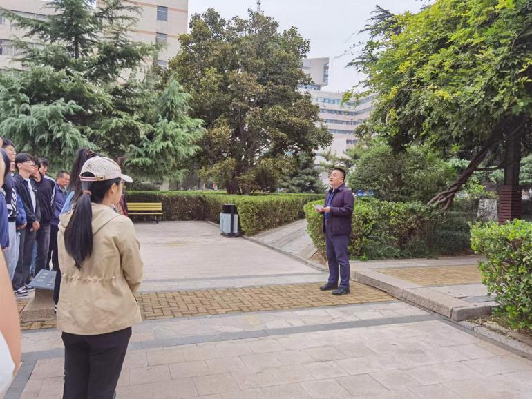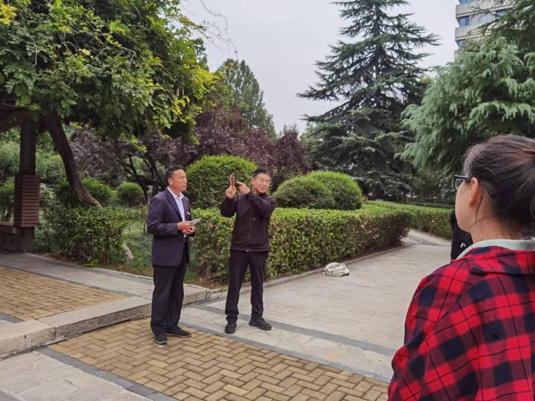 在西花园喷泉举办劳育共建活动——“给树木颁发身份证”。后勤保障部千佛山校区管理办公室党支部全体党员,SWAG