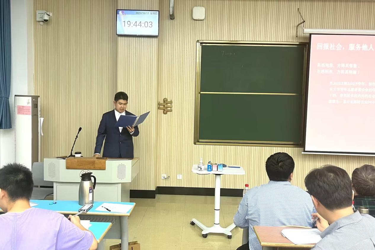 举办2023年度国家奖学金答辩。2020级辅导员郭亦玲,2021级辅导员马天昊、常成,2022级辅导员马雁思及各班班主任等担任评委,各班学生代表到场观摩学习并参与投票评选。