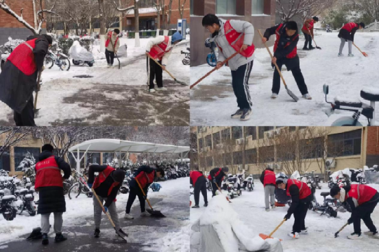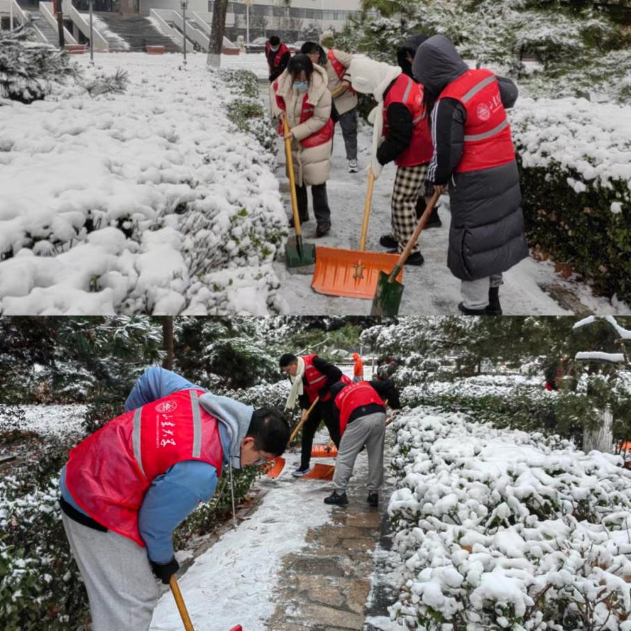 积极响应校团委《关于动员广大青年积极参与校园扫雪除冰的倡议》执行文件,组织各基层党支部、团支部、学生组织共同开展校园扫雪除冰——“我为群众办实事”劳动教育实践活动。