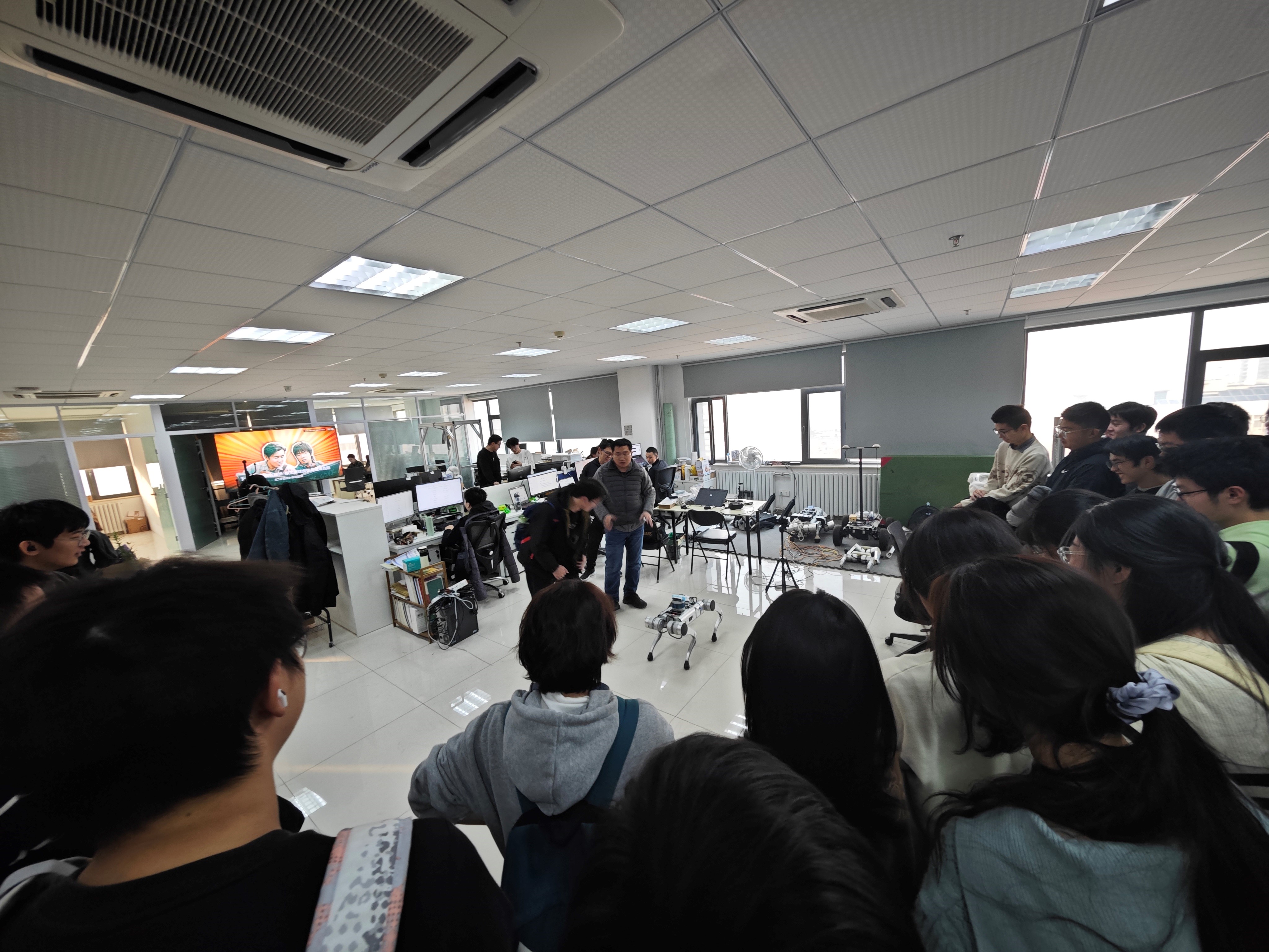 自主研发设计的光伏逆变器和电能质量控制装备等创新成果。卓越新生们了解到如何将现实中复杂的发电供电环境在实验室中通过技术手段开展模拟研究,加深了对新能源大规模并网的控制理论和技术体系的认识。在智能无人系统教育部工程研究中心,卓越新生们了解到受社会广泛关注的双足机器人和四足机器人。在现场,中心柴汇老师邀请同学们与四足机器人进行物理交互,例如从侧面推动机器人等,让学生们得到了更加直接的亲身体验。此外,学生们还了解到中心多种医疗机器人和超声波机器人。在机器智能与系统控制教育部重点实验室,张伟老师团队讲解了机械臂的拆垛码垛、无人分拣、无人车系统对果园的监测等,以及基于仿真技术进行人工智能模型训练的方法。在智能传感器与检测技术实验室,学生们了解到SWAG