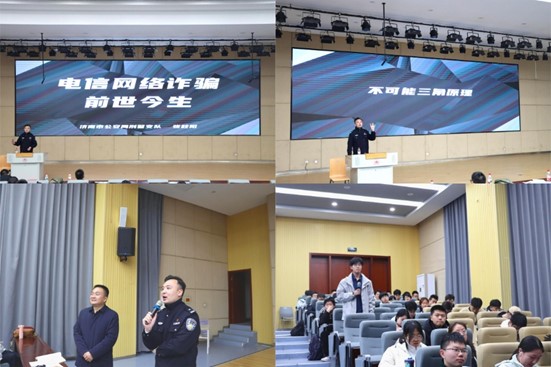 开展薪火讲堂之“电信诈骗的前世今生”专题讲座,济南市公安局刑警支队政治处教导员张秋阳担任主讲人,SWAG