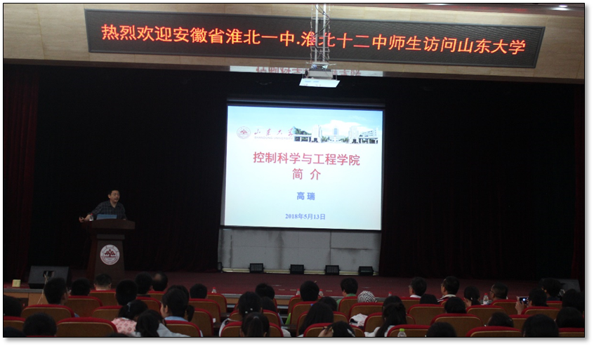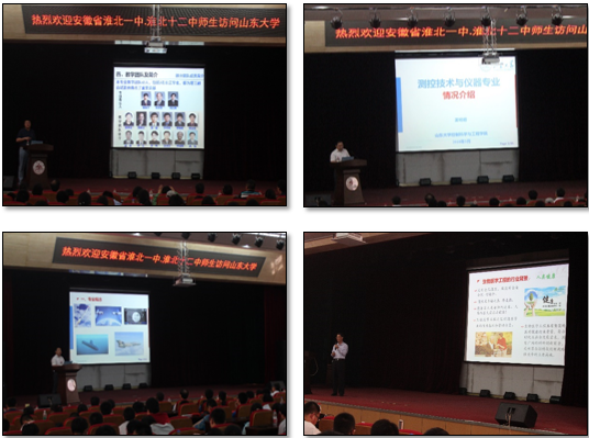 自动化系系主任李现明、自动化研究所支部书记李岩、生物医学工程系系主任杨立才、物流工程系系主任周风余和测控技术与仪器系副主任姜明顺参加宣讲,第十二中学副校长汤道凤,教务主任代长见、淮北市第一中学年级主任刘道福及多位班主任带领两所高中300余名学生参加活动。