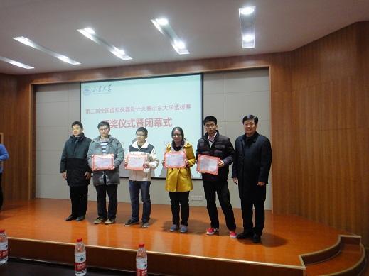 党委书记王志明教授、副院长高瑞教授、党委张振山副书记、过程控制研究所所长隋青美教授、美国国家仪器公司山东区域经理张立军工程师出席闭幕式并为获奖学生颁奖。