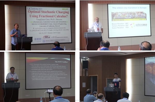 陈阳泉教授作题为“Optimal stochastic charging using fractional calculus”的学术报告,首次提出了最优充电的概念并通过引入分数阶随机信号提高动力电池的性能。斯洛伐克共和国国家科学家Igor Podlubny教授作题为“On fractional-order modeling”的学术报告,针对动力电池宏微观建模进行了全面的综述。东北大学薛定宇教授作题为“Fractional-order system analysis and design with FOTF Toolbox”的报告,介绍了最新的分数阶系统高精度快速算法及MATLAB仿真应用。哈尔滨工业大学孙光辉副教授作题为“Fractional order sliding mode control strategy for a kind of Euler-Lagrange system”的报告,介绍了分数阶控制器在飞行器姿态控制等领域的可靠应用。