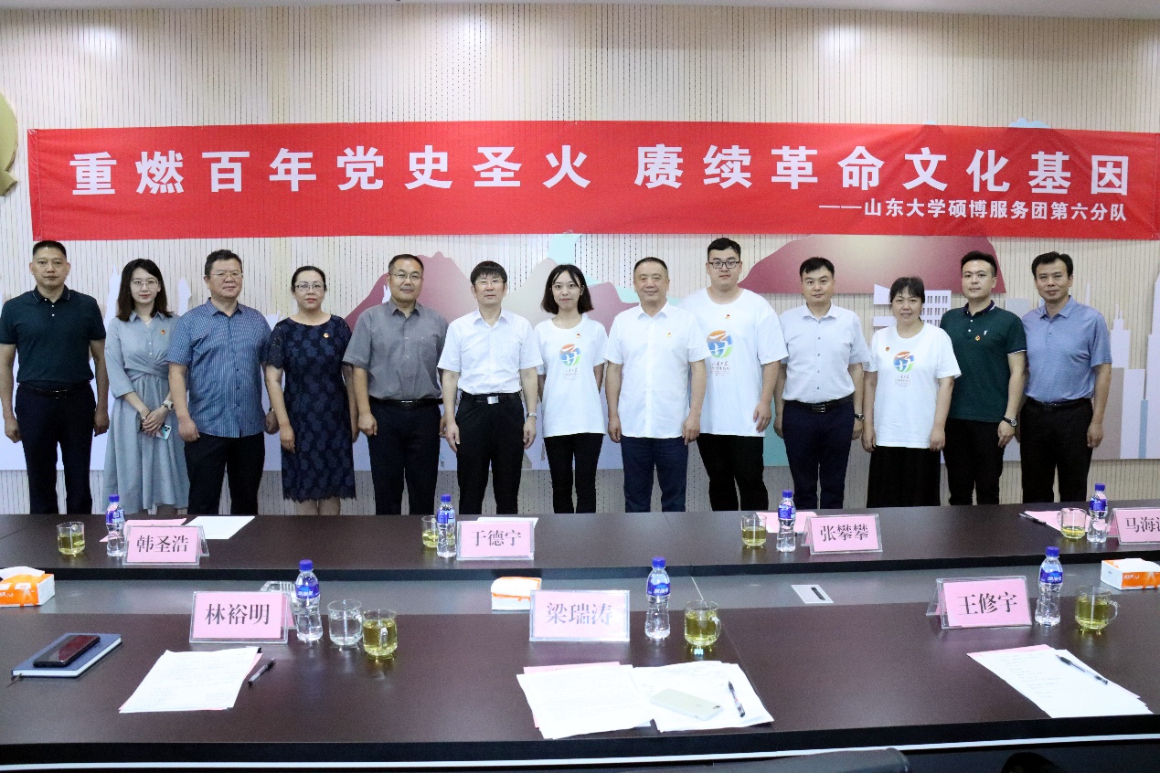 始终践行服务山东战略就是服务国家战略、服务山东发展就是服务国家发展、扎根齐鲁大地就是扎根中国大地的发展理念,自2004年起就同烟台市建立一系列合作平台,同万华集团、玲珑集团等一大批烟台市重点企业在人才培养、课题合作、联合攻关等方面展开全面务实的合作,取得了很好的效果。韩圣浩表示,同学们依托暑期社会实践,立足烟台,深化开拓,对于推动服务山东工作更广更深更实发展具有积极意义,并对调研团师生提出三点要求:一是要提高政治站位,传承红色血脉。切实增强调研针对性和实效性,完善提升调研方法,认真分析和梳理胶东红色文化发展现状、传播模式存在的困难和问题,为当地红色文化进一步传播发扬“查漏补缺”。二是要深入分析思考,抓住实质问题。要聚焦调研中发现的关键问题,更要深入研究总结问题背后实质的、更深层次的原因,为下一阶段的解决落实奠定基础。三是要强化责任意识,推动解决落实。鼓励同学们与当地博物馆、纪念馆对接联络,形成弘扬胶东红色文化的强大合力,分类别形成问题清单和任务清单,出实策、鼓实劲,以钉钉子的精神攻坚克难,多方面多角度全方位探索胶东红色文化教育新形式,开辟胶东红色文化的传播新路径。同时,韩圣浩强调,近期全国各地自然灾害多发、疫情防控形势仍然严峻,广大师生在开展社会实践的同时一定要将健康安全放在第一位,提高防范意识,杜绝侥幸心理、麻痹心理。