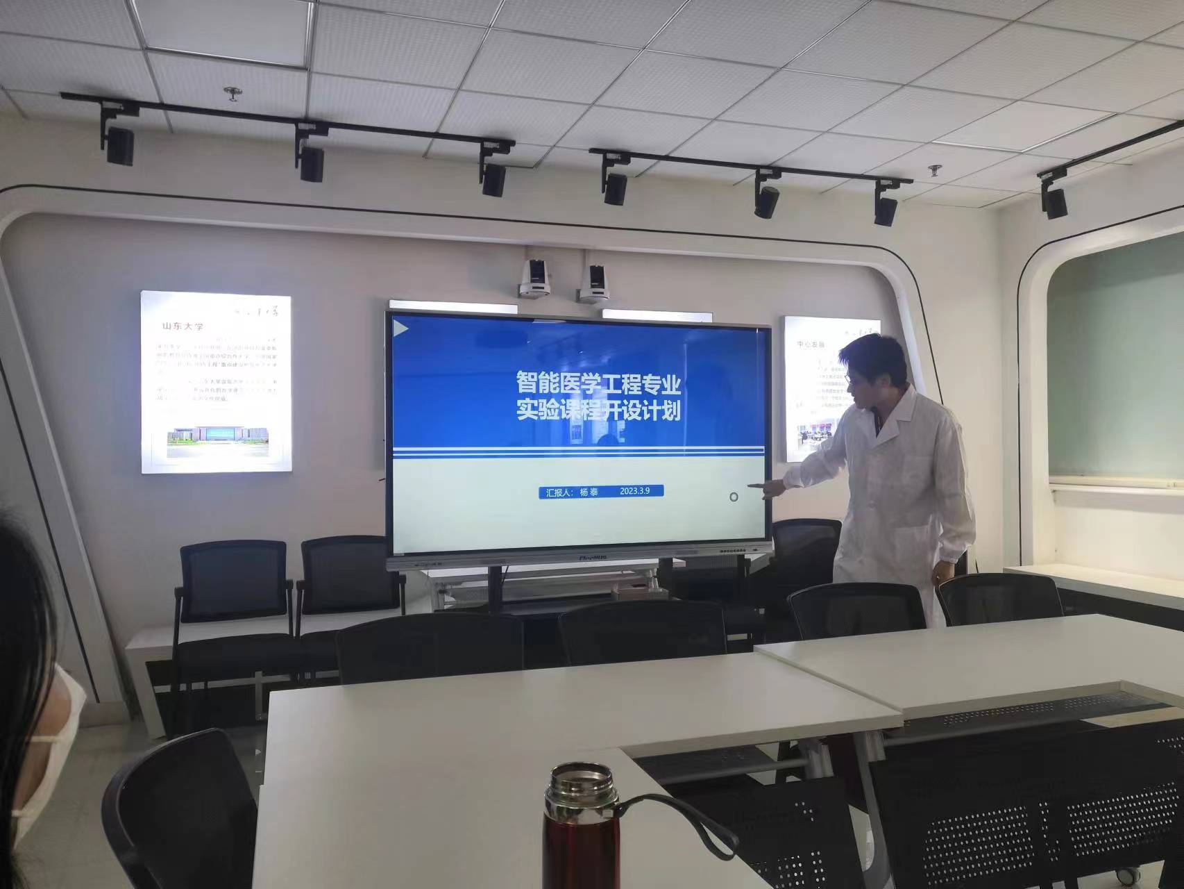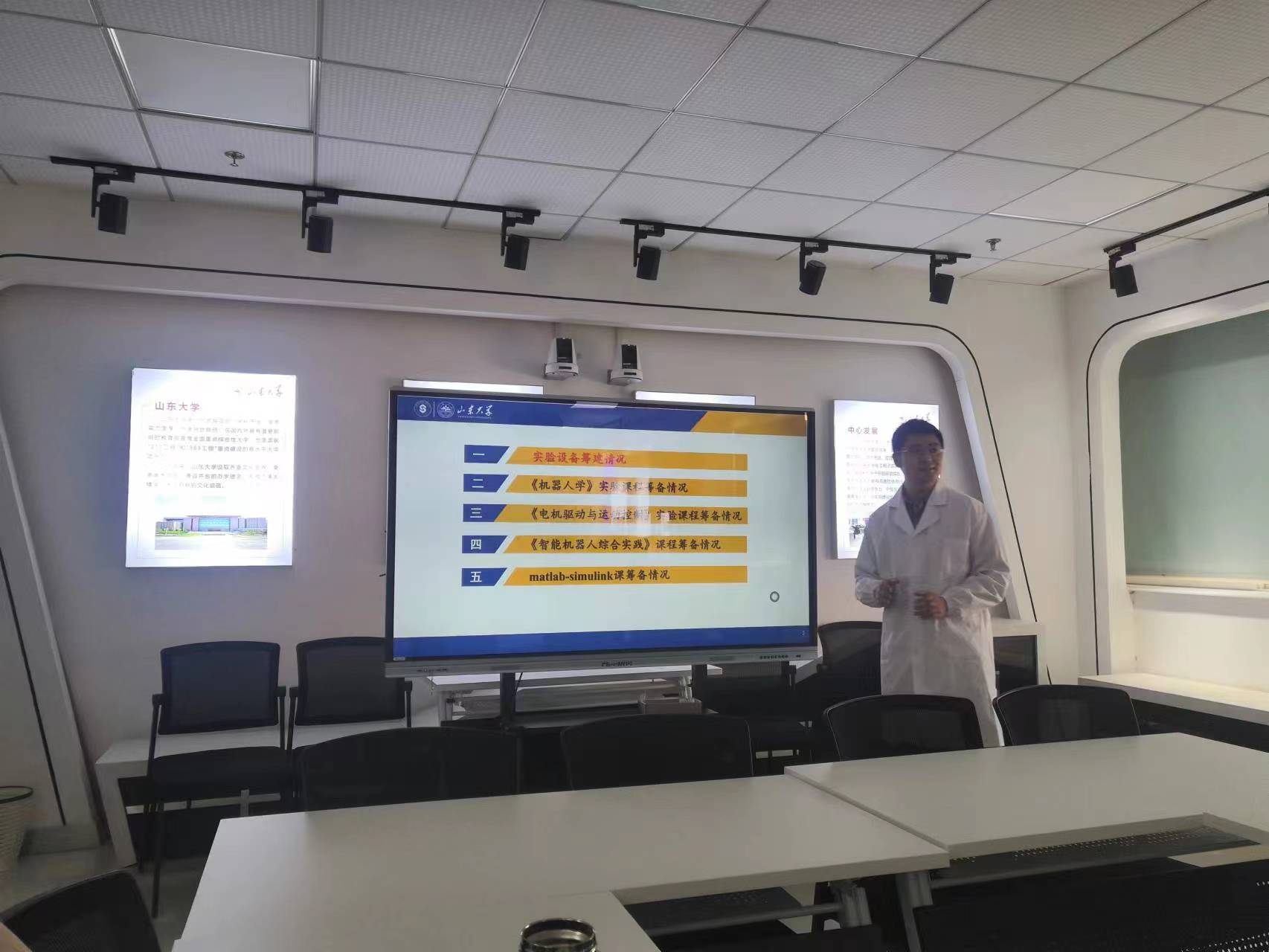 对新专业实验室建设及实践教学工作要求,分别由杨泰和陈腾结合教学大纲汇报了智能医学工程和机器人工程专业实验开设计划和安排,与会老师对实验设备、实验项目及与理论课程衔接等内容进行了充分研讨和论证。