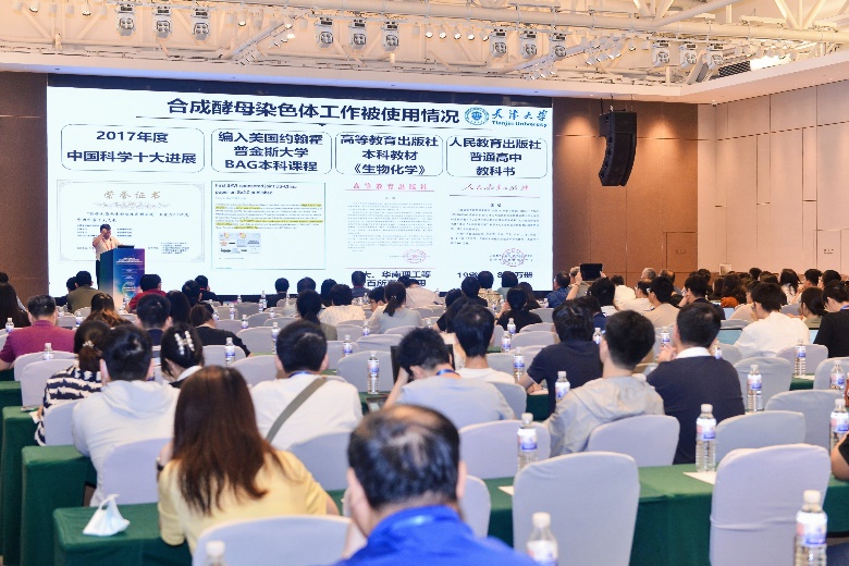院士、天津大学元英进教授就“合成基因组及应用”作主旨报告,系统介绍了生物化工前沿和应用领域,其中包括将基因组合成技术应用于生物制造、新药研发、环境修复等方面取得的一系列重要成果,他们提出的双标靶向精准修复策略能够实现整条染色体修复全覆盖,从而完成缺陷序列的精准修复,建立的合成酵母基因组缺陷快速定位(PoPM)和精确修复方法处于国际研究的前沿水平。中国科SWAG